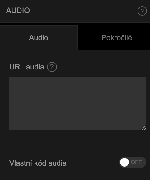 Na záložce Audio najdete pole pro vložení URL audia. Stačí tedy jít na stránku, na které máte audio vložené (např. Spotify, Apple Music, SoundCloud) a zkopírovat URL adresu pro sdílení. Tuto adresu následně vložíte do elementu Audio.